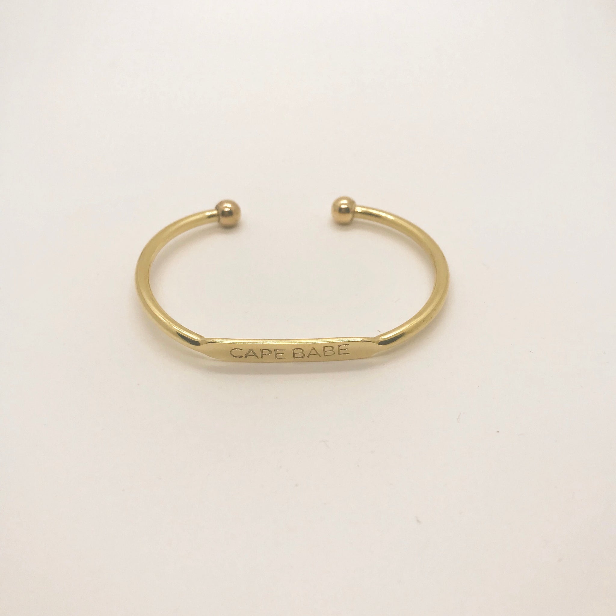 Brass cuff stamped with Cape Babe