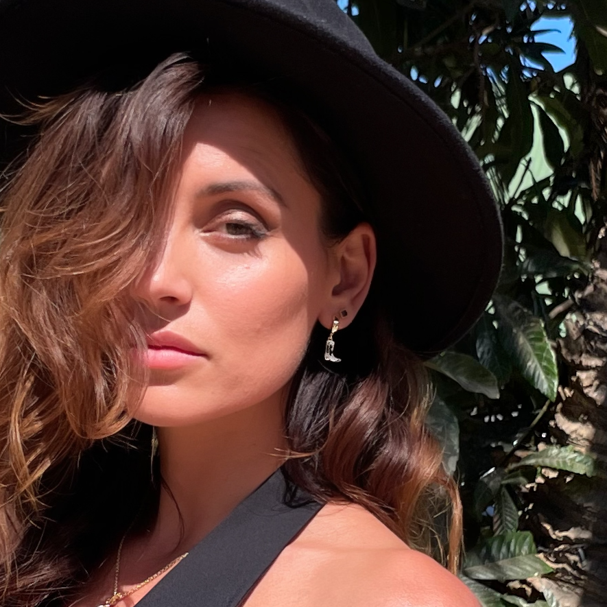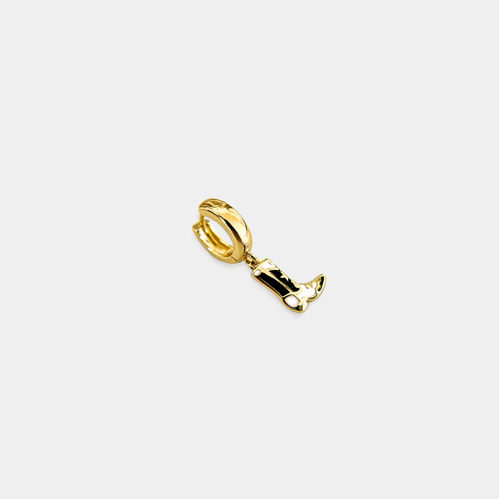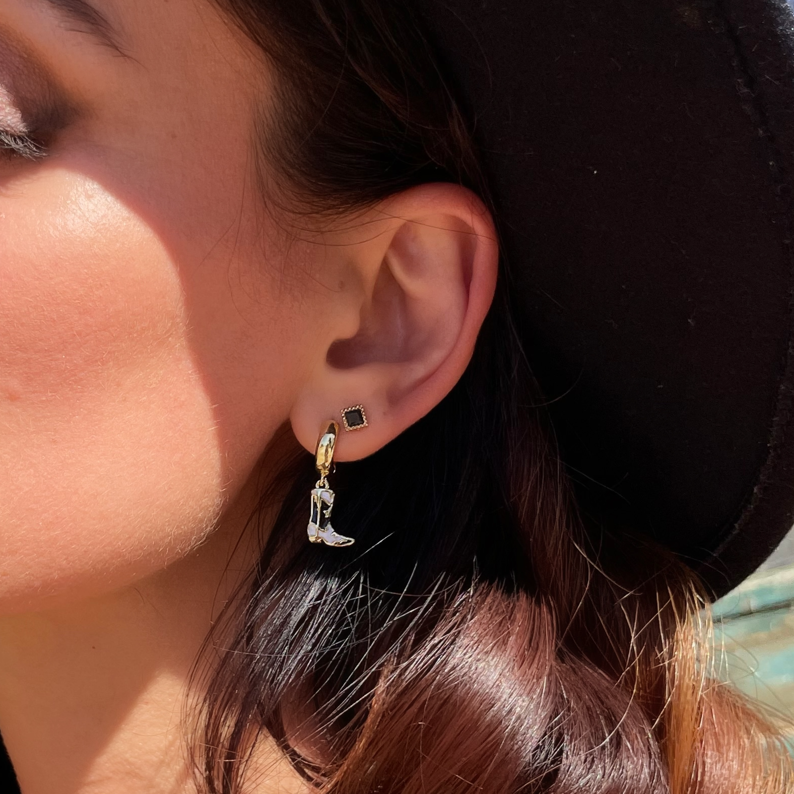 18K goldfilled brass Huggie and Goldfilled cowboy boots with black and white enamel