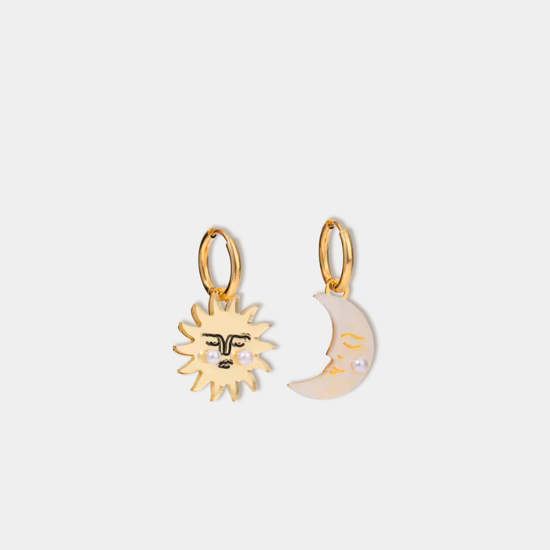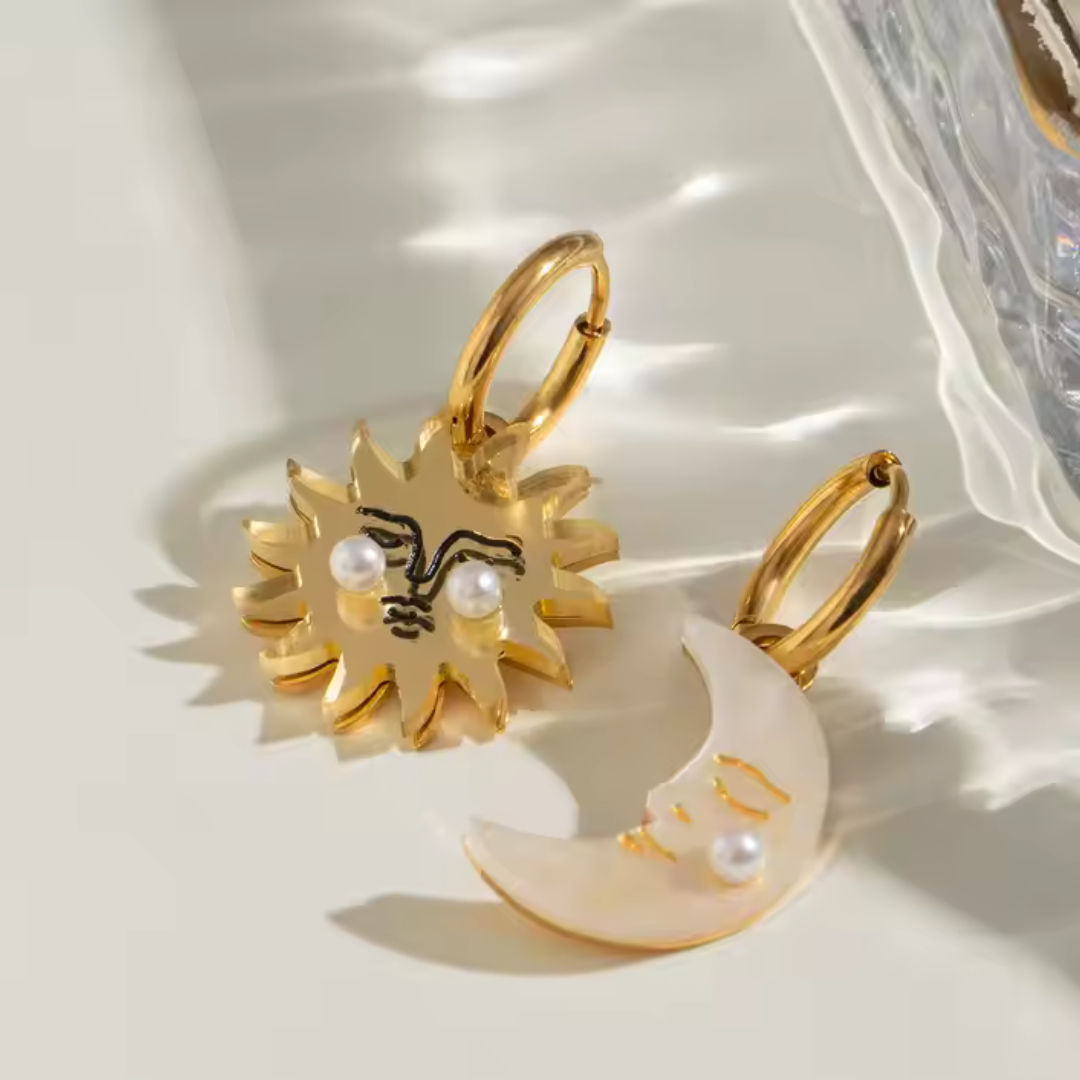 Material: 18K PVD Gold Plated Stainless Steel hoops And Shell layer Moon charm