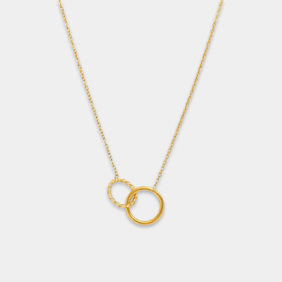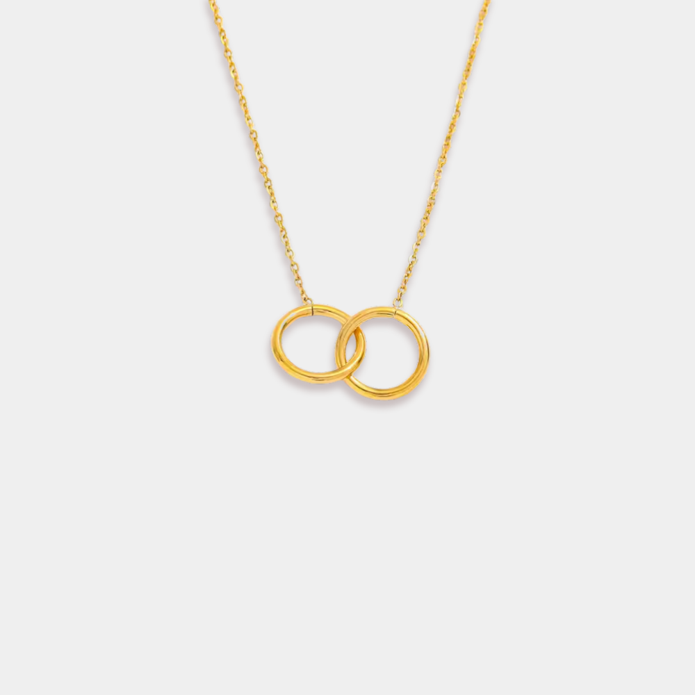 This necklace is a symbol of everlasting friendship with two interconnected circles. One circle, smooth and sleek, represents the simplicity and elegance in the bond of friendship. The other, textured and unique, signifies the diverse qualities that each friend brings to the relationship. Together, these circles beautifully illustrate that two friends can be different but share something special that lasts forever.